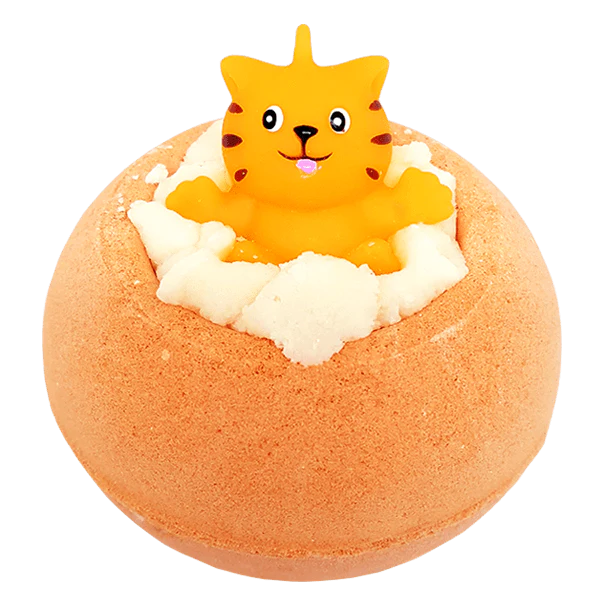 💧 Putojimas ir spalva: Įmetus į vandenį, burbulas ims energingai putoti, nuspalvindamas jūsų vonią ryškia, pulsuojančia oranžine spalva. Sukuriamas tikras citrusinis baseinas, kuriame maudytis bus vienas malonumas! O burbului ištirpus, jūsų lauks smagus mažas draugas – žaislinis kačiukas.